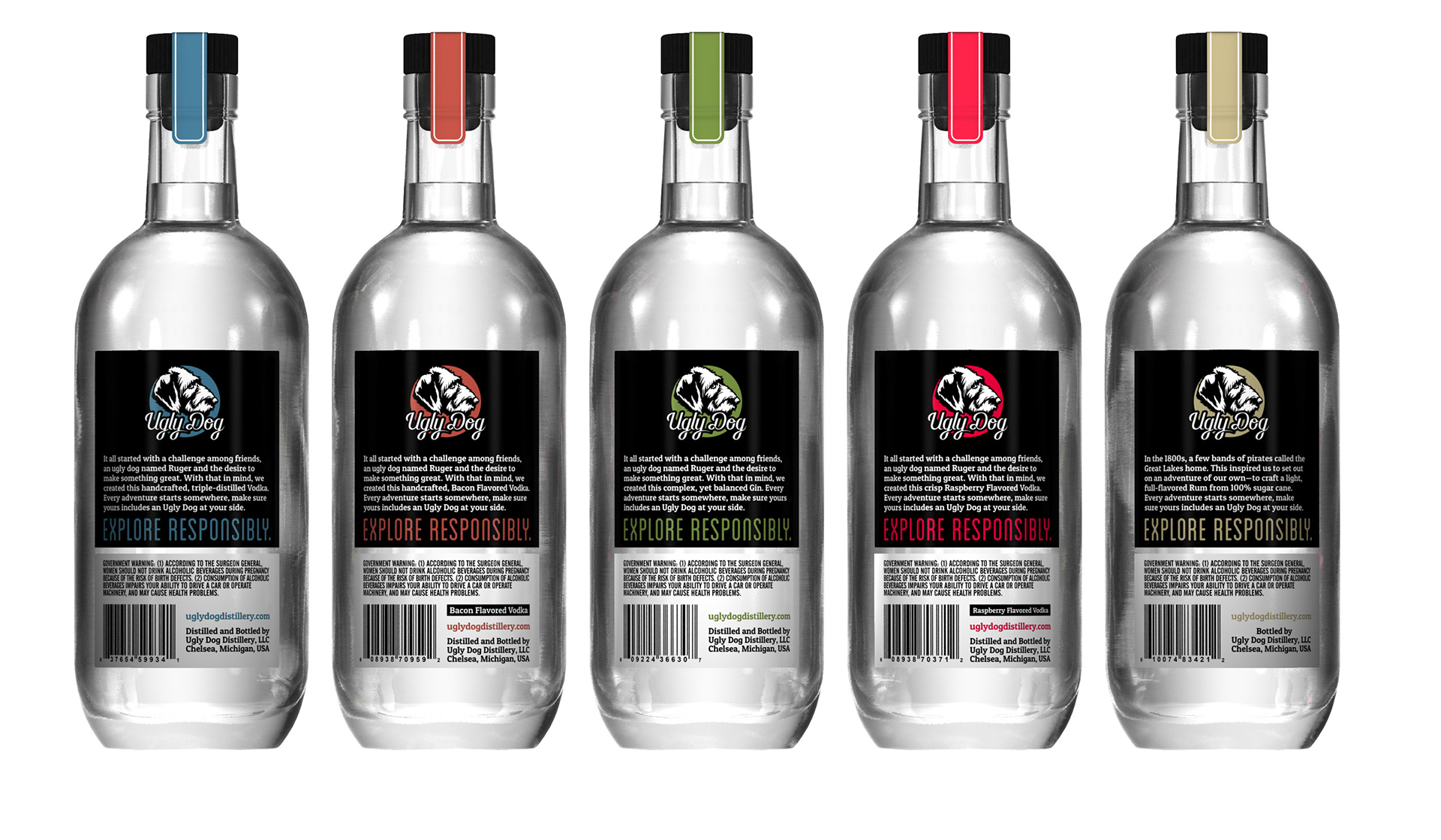 In addition to creating Ugly Dog's new logo, featuring custom lettering, I then designed the labels for their family of spirits.